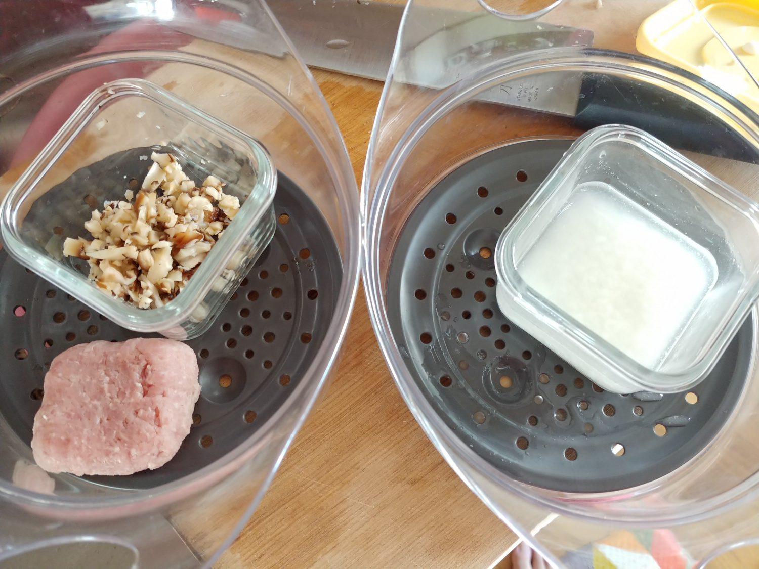 Steam all ingredients in a steamer. (If you have a baby food master, cook it for 30 minutes and cook it automatically.)