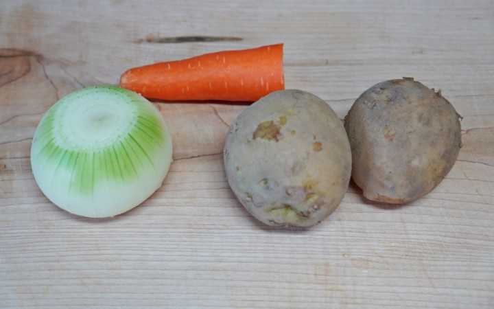 Preparando los ingredientes! Corta patatas y zanahorias.
