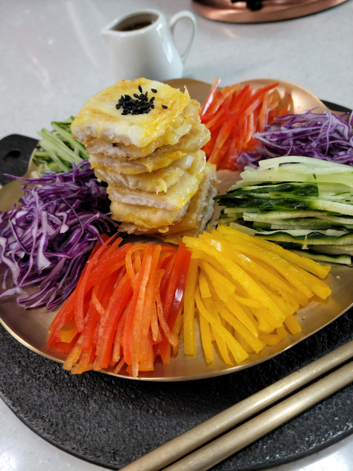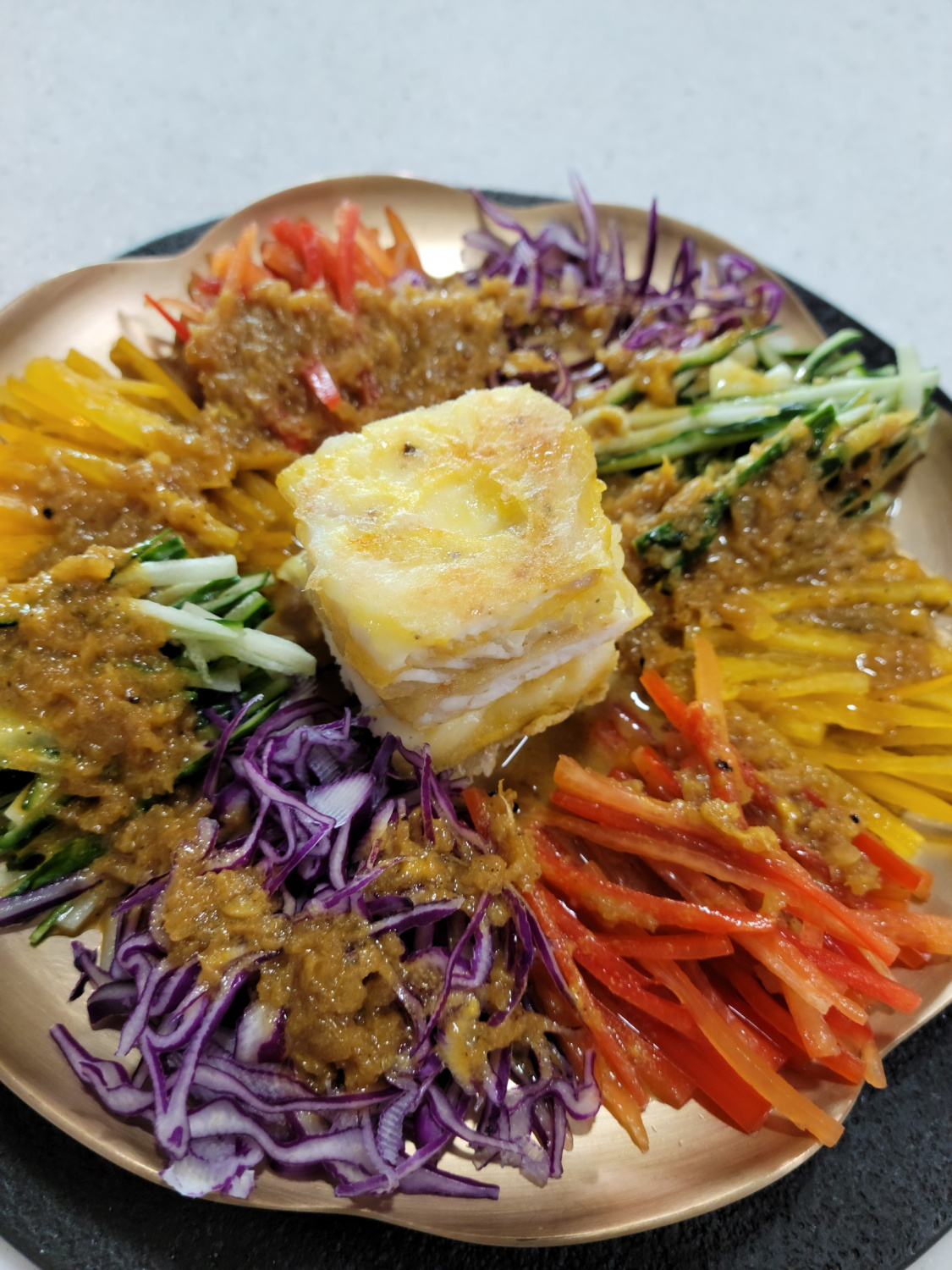 Es un plato que suelo cocinar en das especiales, como invitaciones a invitados o cumpleaos. He cambiado el aceite de pescado entero en lugar del pescado entero de Myeongtae existente. ^^ La salsa fresca es un plato brillante y maravilloso que te hace refrescar el apetito.