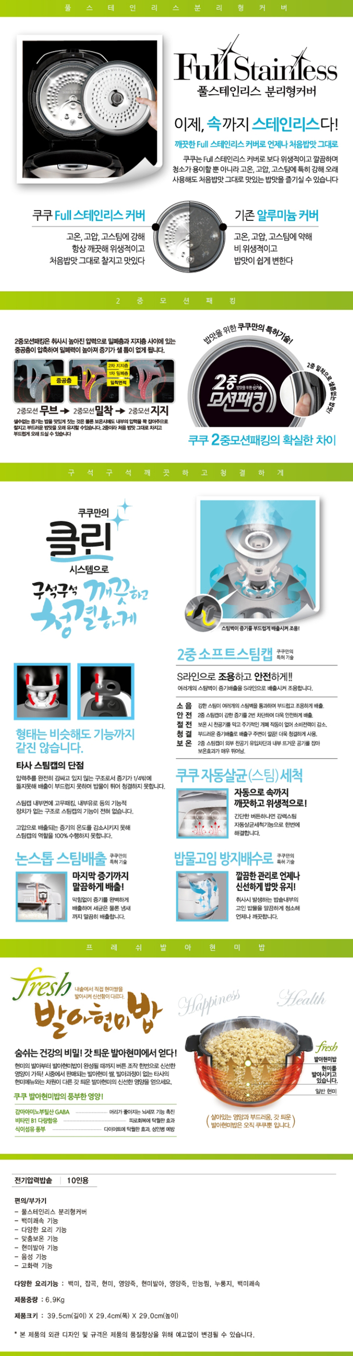 본상품구성[쿠쿠]풀스테인레스 분리형 커버 압력밥솥 10인용(CRP-P107FR/FD),계량컵, 주걱, 청소용 핀, 사용설명서 및 요리안내