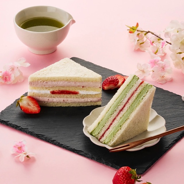 양배추, 감자달걀, 딸기잼으로 만든 3단 샌드위치