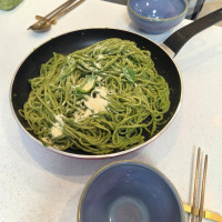 잣이 들어가서인지 도 고소하고 담백한 맛 생각처럼 느끼하지 않은 바질페스토 파스타랍니다. 바삭하게 구운 마늘의 향과 맛, 입 안 가득 바질향이 먹는내내 기분좋게 하네요.