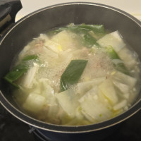소고기를 충분히 우려낸 다음 무와 다진 마늘을 넣고 10분 정도 끓여준다.