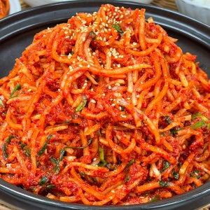 무생채는 이정도 굵기로 썰어주시면 되요. 채 써는게 힘들다면 채칼 이용하셔도 되긴하는데 직접 칼로 써는게 좀 더 아삭하답니다.