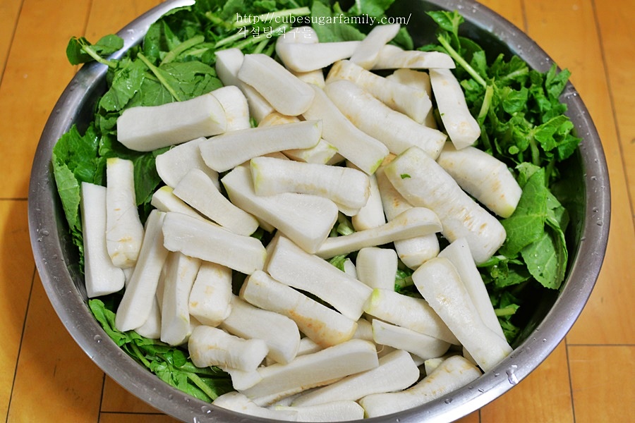 알타리는 깨끗이 손질해서 먹기 좋게 4등분으로 썰고