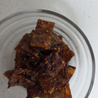 물을 좀 넣어서 양념장을 만들거나 쥐포를 씻어서 볶았으면 덜 딱딱했을 것 같아요.
