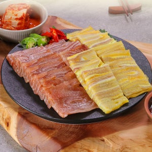 편육 썰어담고 흑임자도 솔솔~김치를 함께 내요~