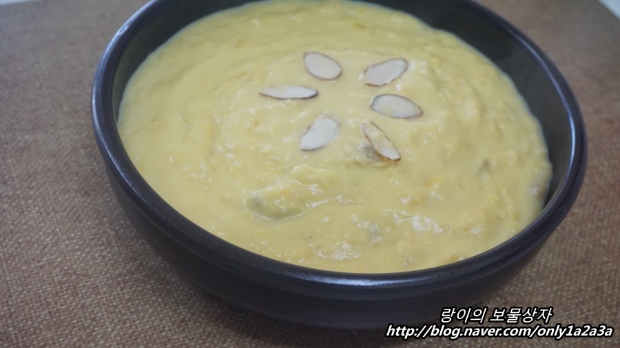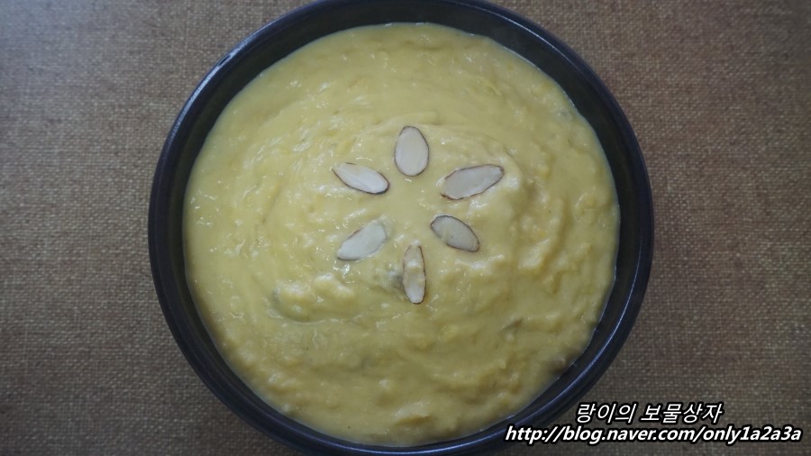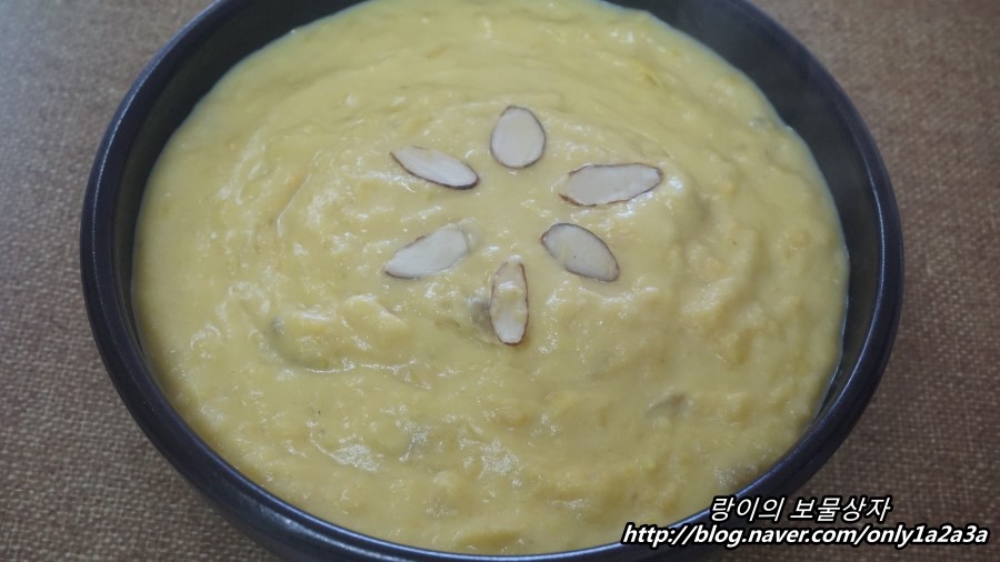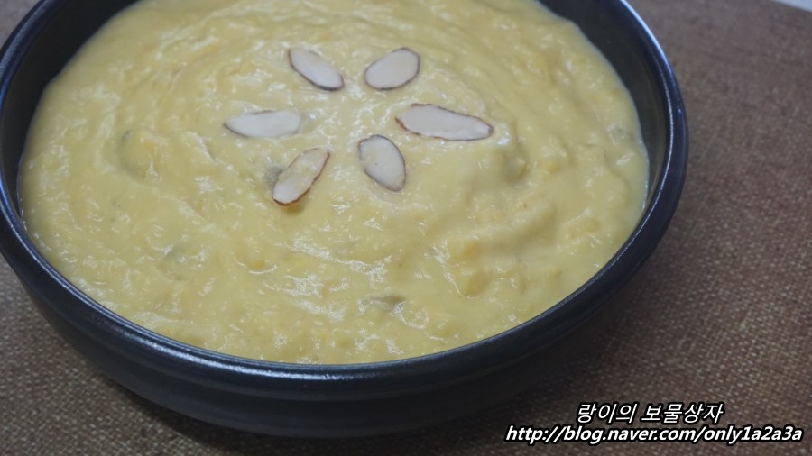 식감과 고소함을 더 해주는 아몬드를 고명으로 사용했습니다