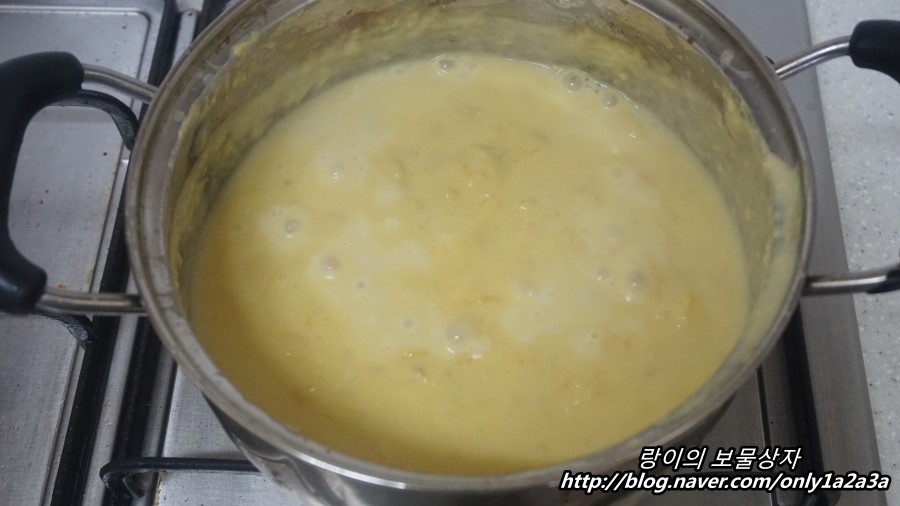 끓이다 보면 우유가 졸아들어서 되직해지는데 그때마다 조금씩 우유를 넣어서 계속 졸여주세요
