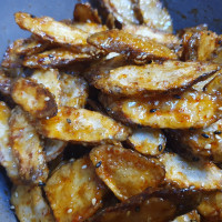 큰 딸의 최애 반찬이에요! 두 뿌리 튀기면 한 번에 다 먹어버려 늘 여섯뿌리씩 튀긴답니다. 고추가루는 빼고 달콤달콤 버전으로 먹는답니다 :)