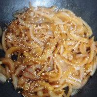 양파가 중간 사이즈이고 섬섬한 걸 좋아해서 간장 넉넉한 2스푼 넣었는데 맛있어요. 마지막에 깨 솔솔.