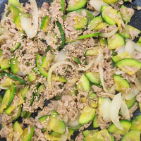 애호박을 넣고 볶아주다가 살짝 익어가면