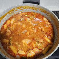 시판 고추장 달아서 설탕 올리고당 빼고 감자 많이 넣고 새우젓 반티스푼 마지막 대파 송송~ 남편이 맛있다고 하네요^^ 나중에 딸오면 또 만들어 줘야겠어요 좋은레시피 감사합니다~한냄비 가득 만들어먹고 조금남은 사진입니다