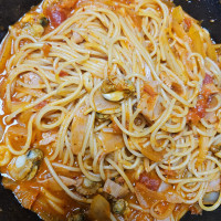 집에있는 바지락하고 새우하고 후랑크 얇게 썰어서 흉내내보았는데 정말 맛있네요. 고급레스토랑 부럽지않아요. 치즈류가 하나도 없어 그냥 했는데도 괜찮았어요. 다만 베이컨이 아니라 그런지 물2컵엔 좀 싱거워서 좀더 조리다가 소금 2꼬집 후추넣으니 딱이었어요.