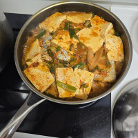 3. (2) 육수에 갈치를 넣어주고 양념장을 골고루 얹어준 뒤 중불에서 뚜껑 닫고 끓여준다