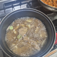 집에 남아있는 갈비살로 했더니 기름이 많이 뜨긴 했지만,