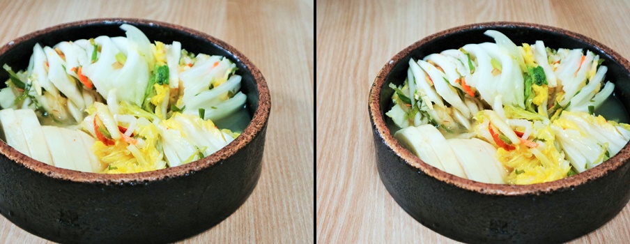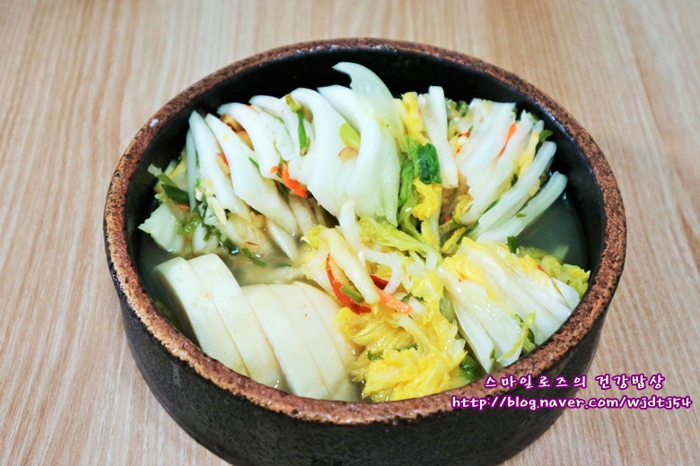백김치가 익으면 국물이 알싸하고 맛있어요