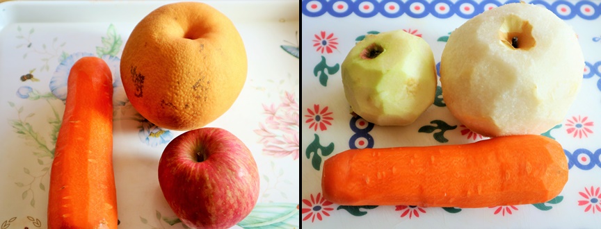 사과와 배는 껍질을 벗겨주고 당근도 껍질을 벗겨줍니다~!~