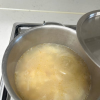 북어채 큰1주먹 뜯고자르고 물어살짝만적셔두기 무 1토막 채썰고 참기름에 북어채볶다가 물 1000ml 다시마 4장 무 넣고 연두2스푼 다시다 1/2t 미원 약간 맛소금,꽃소금으로 간맞추기 계란 빼고 맑은국으로 끓이기