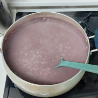 찹쌀이 다 가라앉아서 위에서보면 팥만 보이지만 주걱으로 바닥을 잘 긁어서 뒤죽박죽 잘 섞어주시면 이미 죽은 완성된 상태입니다.