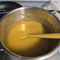 살짝 끓어오른다싶을때 준비해놓은 설탕50g과 꿀30g을 넣고 설탕이 녹을때까지 계속 저어주면서 약불로 끓여주세요 :)