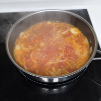 토마토 완숙을 넘어 반점이;;생겨가는게 있어서 넣어먹었는데 너무 맛있습니다! 저는 양파 반개, 토마토 3개, 치킨스톡 1/2개 넣었구요. 후기 참고해서 버터로 볶고 끓일 때 월계수잎 넣고 소금, 후추로 간하고 파슬리 뿌렸더니 맛있게 잘 되었어요! 그런데 토마토 완숙된걸 정량보다 많이 쓰니 토마토 자체의 수분으로 물은 거의 넣지 않았는데도 잘 만들어졌어요!