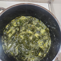 재료(4인분): 자른미역2/3컵. 다진마늘1/2T. 들기름1T. 국간장2T.