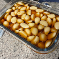 끓이는거 아니구요. 찬물에 식초.소금,물을 넣고 그대로 삭혀 주심 되세요. 물:식초=2:1 정도라고 보심 되세요. 그리고 일주일 정도 그늘진 곳에서 삭혀 주시는데요 마늘이 파랗게 변하는 것을 방지하기 위해서 검정비닐이나 빛을 차단 할 수 있는 비닐을 씌워서 1주일간 실온에 보관해 주세요.