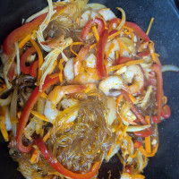 오 대박! 집에 있는 재료들로 뭘할까 하다가 새우를 이용해 보고싶어서 검색해봤더니 새우 잡채가 있더라구요 ! 양념 대박...넘 맛있게 잘됐어요! 양이 달라서 모자란 간은 먹어가면서 알아서 했어요 ㅎㅎ 잘먹겠습니당~~