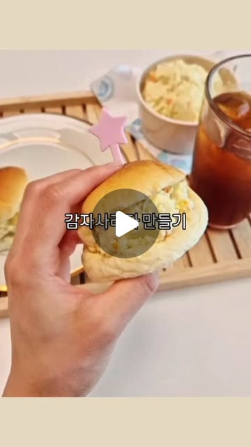 반찬으로도 괜찮고 간식으로도 훌륭한 으깬 감자샐러드를 만들어 보았어요~ 모닝빵에 으깬 감자샐러드를 넣어 먹으니 맛있는 샌드위치가 되었어요