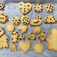 현미 쌀가루로 만들었는데 담백하고 많이 달지 않아 좋았습니다. 초콜릿도 추가해서 넣었어요. 처음에는 반죽이 푸석했는데 조금 주무르니 찰진 반죽이 되었어요. 버터를 잘 섞어야했나봐요. 덕분에 아이와 즐거운 시간을 보냈습니다.