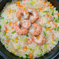 물과 쌀의 양을 1 : 1로 계량 하면 크게 실패 하지 않고 솥밥 잘 할 수 있어요. 새우는 중간보다 조금 작은 사이즈로 200g이고 약 40개 정도 사용했어요.