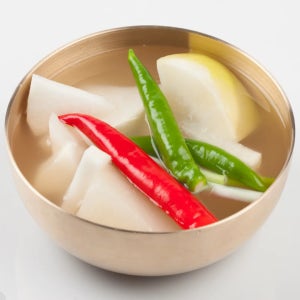 단단하고 야무지게 생긴 천수무 한다발을 사다가 작은 항아리에 동치미를 담았어요. 동치미 담는건 김치 담는거 보다 재료나 과정도 간단하고 맛내기도 쉬워요. 특히 천수무는 크기는 작지만 단단하고 단맛이 강해 동치미무로 안성맞춤이예요. 동치미를 담는 법은 동치미무를 굵은 천일염 소금에 굴려서 항아리나 담을 용기에 차곡차곡 넣어 두고 다음날 소금 한줌 정도 위에 더 뿌려 주고 위아래 무의 자리를 바꿔 주면서 절여줘요. 그리고 물에 소금과 뉴슈가를 넣고 잘 녹여서 동치미무에 부어 주면 완성이예요. 설탕보다 뉴슈가를 넣어야 동치미가 무르지 않고 깔끔한 맛이 나요. 베보자기에 배, 마늘, 생강을 넣고 동치미 항아리에 넣어 주고 위에 무청, 쪽파, 청양고추, 대추를 넣고 누름돌로 눌러 주고 일주일 정도 지나면 막걸리 익듯이 발효가 되면서 기포가 조금씩 올라오는 듯 하면서 살짝 익는 듯한 냄새가 나요. 그럼 냉장고에 넣고 겨울이 되면 하나씩 시원하게 꺼내서 썰어 놓고 물과 매실청을 넣어 주면서 염도를 맞추면 되요. 항아리가 발효가 잘 되는 거 같아서 첨엔 항아리에 담았다가 나중에 냉장고에 옮겨서 보관하면 더 맛있게 익더라구요. 추운 겨울에 살얼음이 낀 동치미 무와 국물을 꺼내 먹는 맛은 이한치한~ 넘 시원하고 개운하고 맛있어요. 동치미는 싱겁게 담으면 상할 수 있어서 짜게 담는 편인데 짜게 담아도 물을 타서 희석해서 먹으면 염도를 조절할 수 있어요. 아삭하고 시원한 동치미 한그릇이면 속이 다 시원해지니 겨울 별미죠.