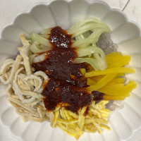 시금치나 부추가없어서 오이로했는데 양념이 맛있어요 저는 진하게먹는편이라 소스2배로했어요
