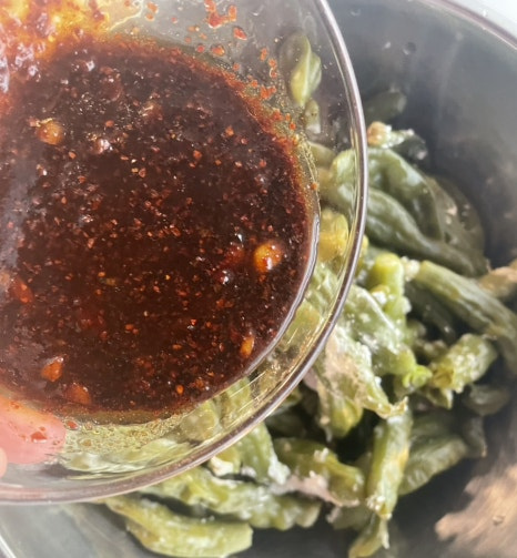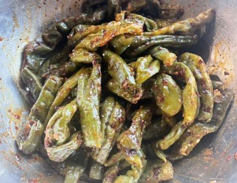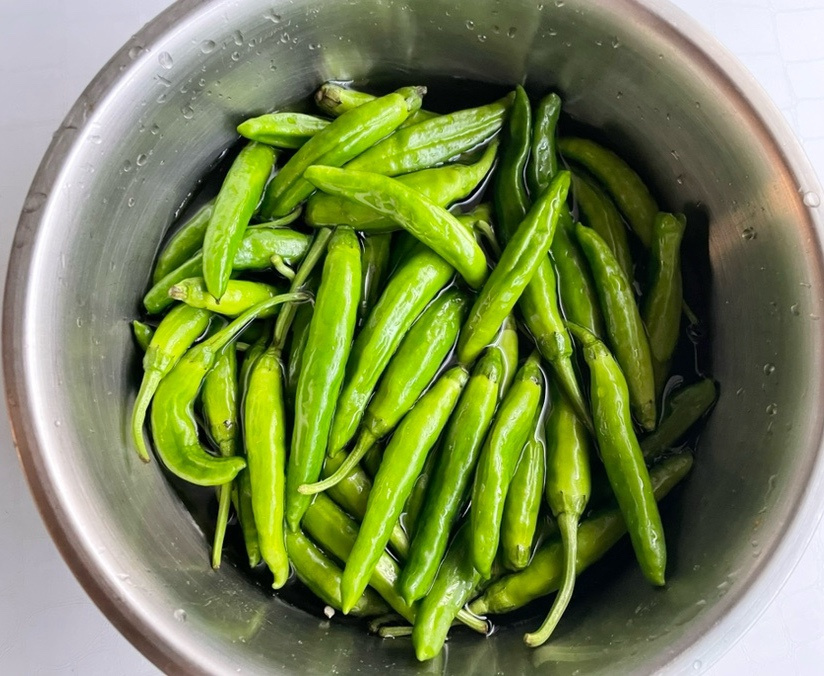 오늘은 젤 구하기 쉽고 편한 부침가루와 밀가루를 활용해서 기본적인 꽈리고추찜 무침을 만들었어요.