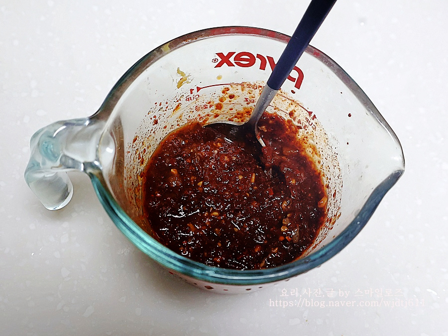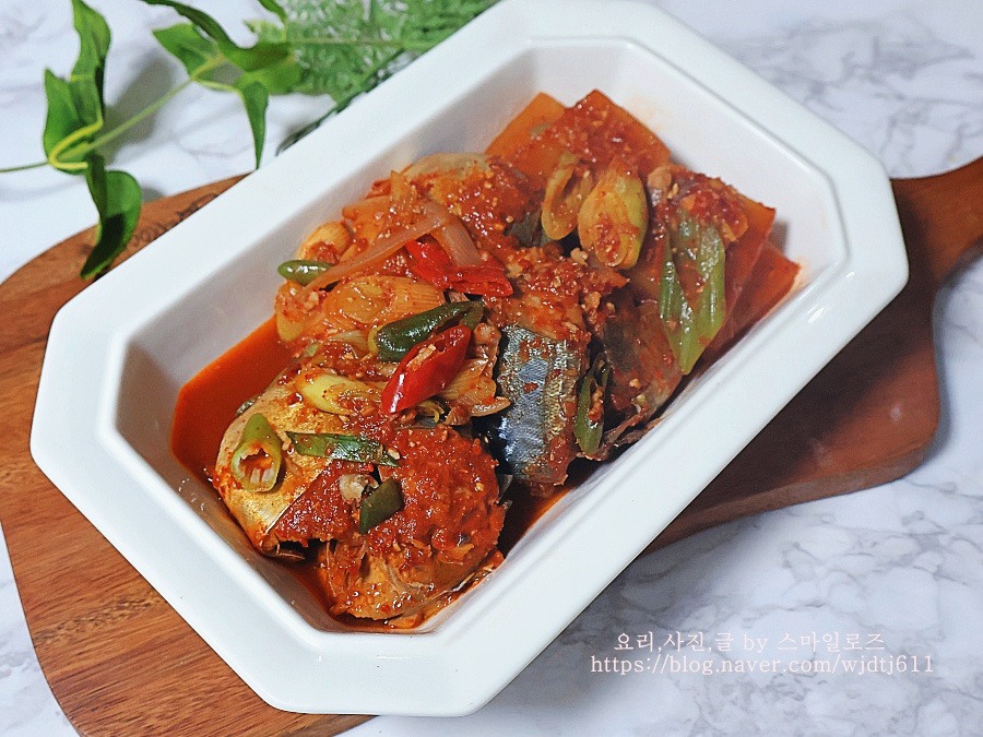 고춧가루 3스푼에 된장을 조금 넣어야 생선 비린 맛도 잡고 구수하며 맛있어요