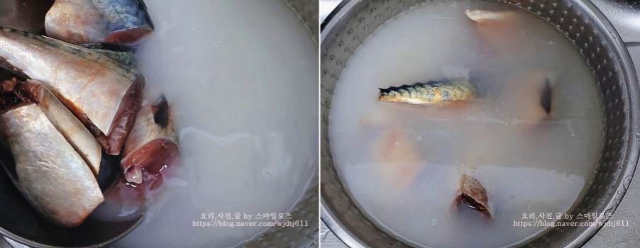 밥을 지으면서 첫 번째 쌀 듯 물은 받아서 고등어 담가 비린내를 잡아주고