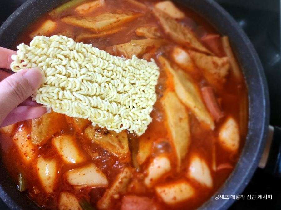 이번에는 라면사리와 치즈를 넣어 치즈 떡볶이를 만들어 봤어요.