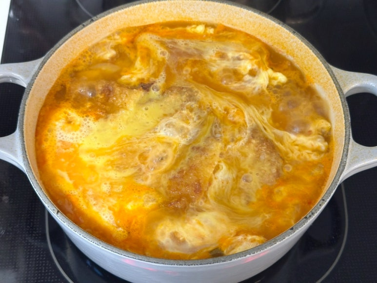 바삭하게 튀긴 돈가스를 진한 국물에 얹은 일본식 전골요리인 돈까스나베! 일식당에서 맛보고 입맛에 딱 맞아서 집에서도 비슷하게 만들어 봐야지 했어요. 수제 돈까스를 든든하게 만들어 두고 돈가스나베도 별미로 만들어 보았답니다. 촉촉하게 계란물을 얹어서 더 부드럽고 깊은 맛에 든든한 저녁 메뉴로 먹기 좋은 돈가스 김치나베를 간단하게 만드는 법을 알려드릴게요 :)