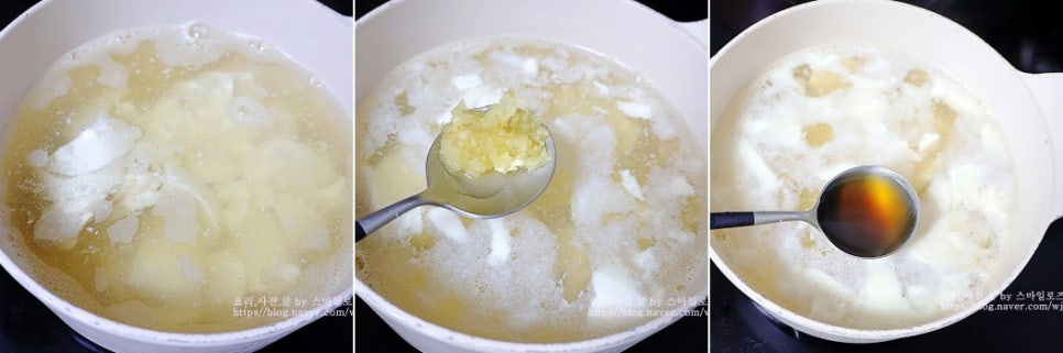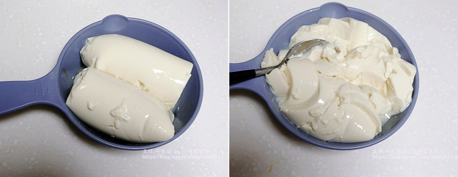 순두부는 숟가락으로 으깨 놓았어요
