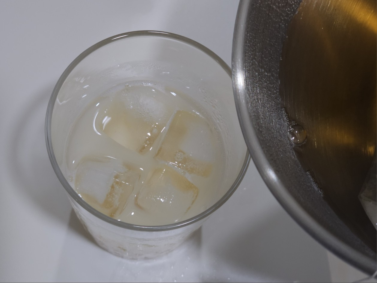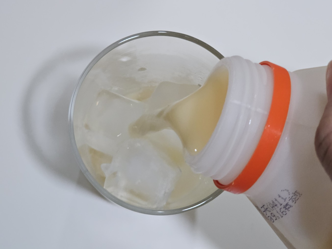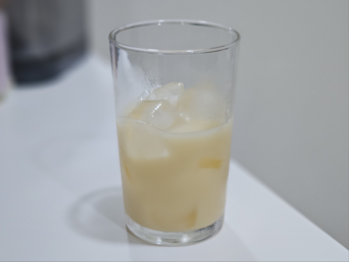 얼음을 넣어 시원한 음료로, 녹차의 향긋함과 요구르트의 달달함이 섞여 향긋 달달 맛있어요.