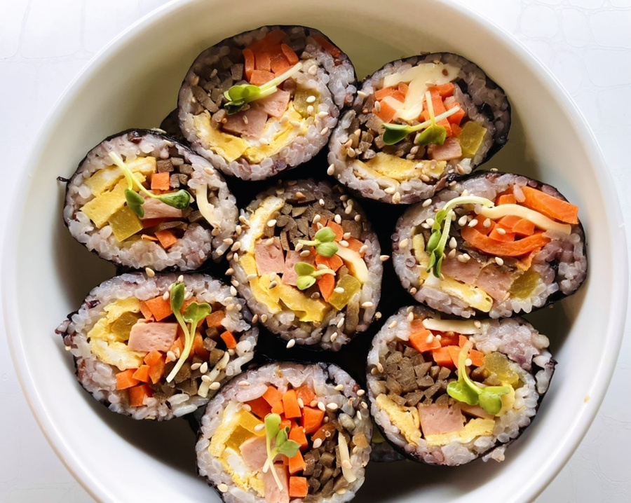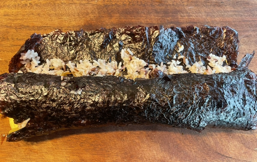 우엉조림은 냉장고에 보관해 차가워져도 맛이 변하지 않으니까 넉넉하게 만들어 며칠 두고 밑반찬으로 활용하고 이렇게 후딱 김밥 만들 때 활용하면 넘 알차요.초록 색감을 가진 채소가 없어서 살짝 아쉬워서 무순을 고명처럼 올렸어요.