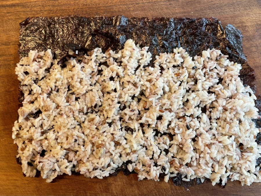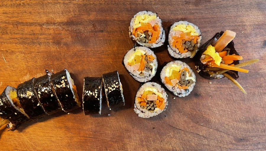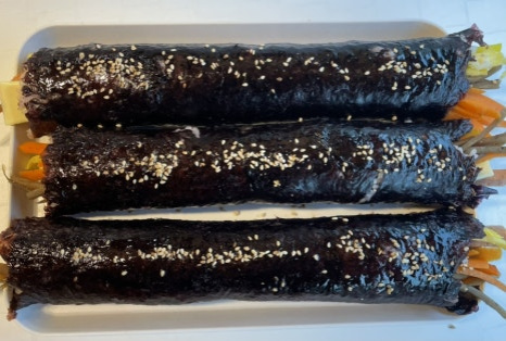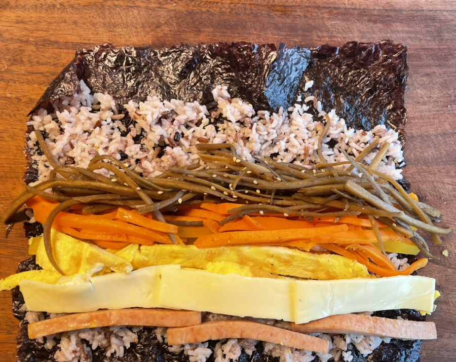 깻잎이나 시금치를 넣어 주면 색감이나 맛이 더 완성도 있는 김밥이 되겠죠.