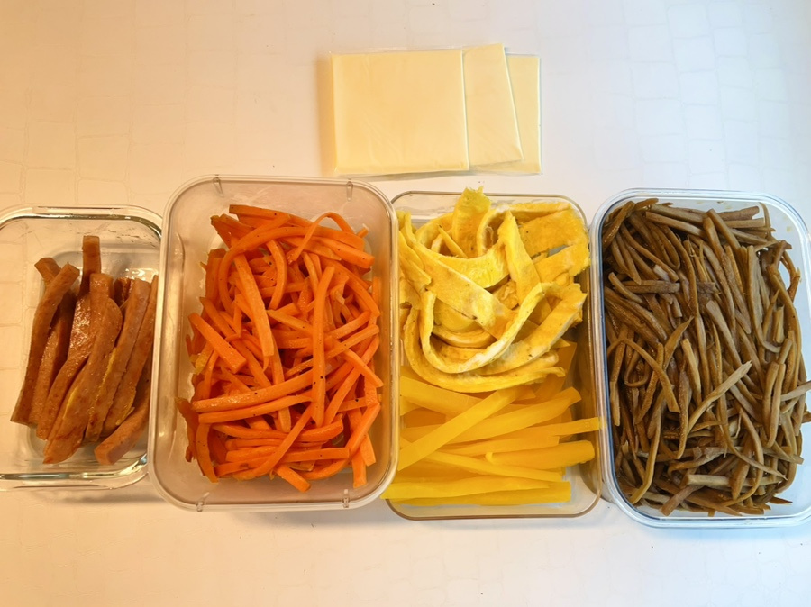 그래서 꼭 미리 우엉 조림을 전날에 만들어 놓고 자면 다음날 아침 다른 재료만 손질해서 요리하면 되니까 일손이 많이 줄더라구요.