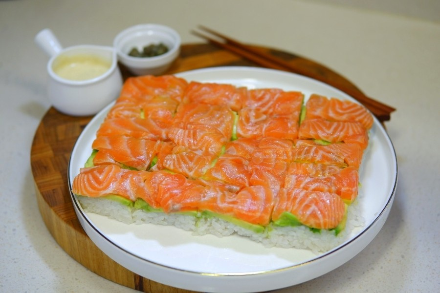 ✔️연어는 반드시 신선한 것을 사용하고, 초대리를 잘 섞어 밥에 간을 맞춰야 맛있는 초밥이 완성됩니다.
