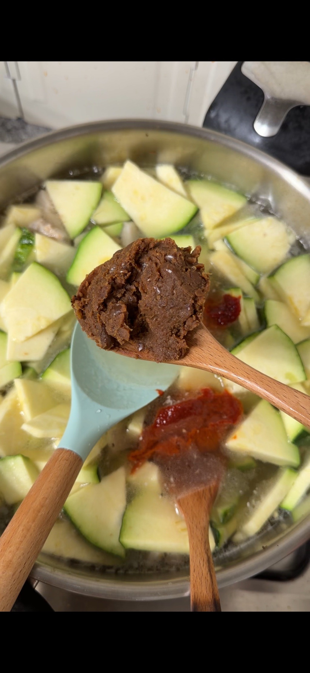 애호박을 받아서 듬뿍 넣어 끓여봤어요!