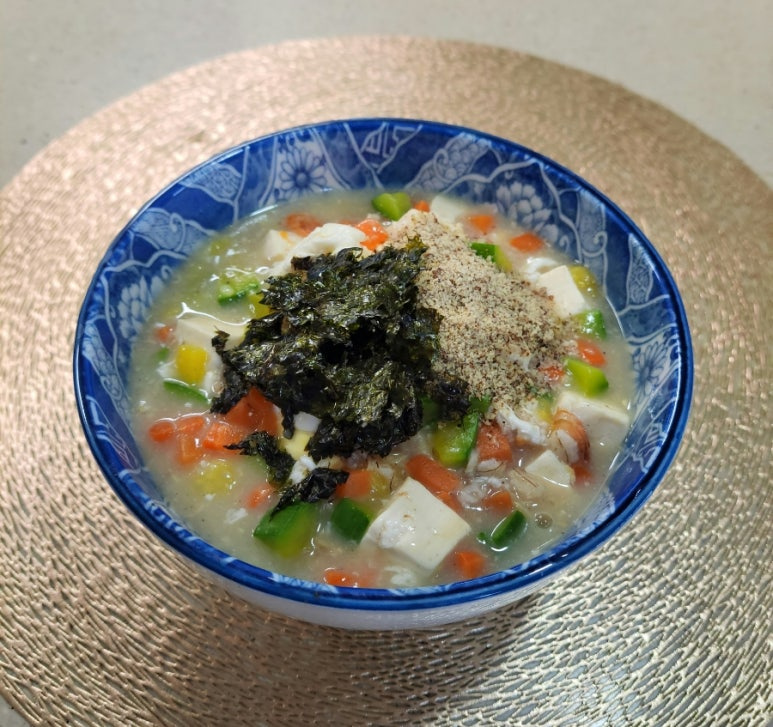금식 검사 후에~ 첫 끼로, 혹은 부드럽고 따뜻한 음식이 먹고 싶을 때, 오트밀 죽이 참 간편합니다. 채소는 작게 썰어 넣고, 두부, 계란 던져 넣고 잠시 끓이면 완성! 들깨가루도 추가했으니 감칠맛도 보장 입니다. "저탄수.고단백.죽"으로~ 두부들깨 오트밀 죽을 추천합니다.
