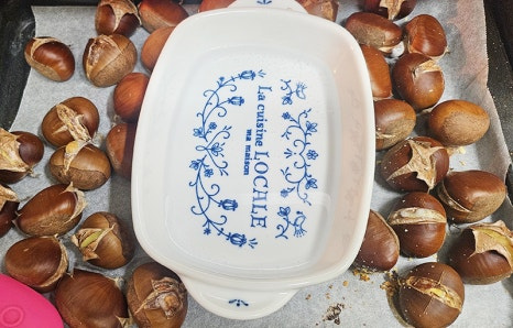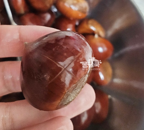 다만 칼집의 깊이나 위치에 따라 껍질이 잘 벗겨지는 밤도 있고, 그렇지 않은 밤도 있어요.