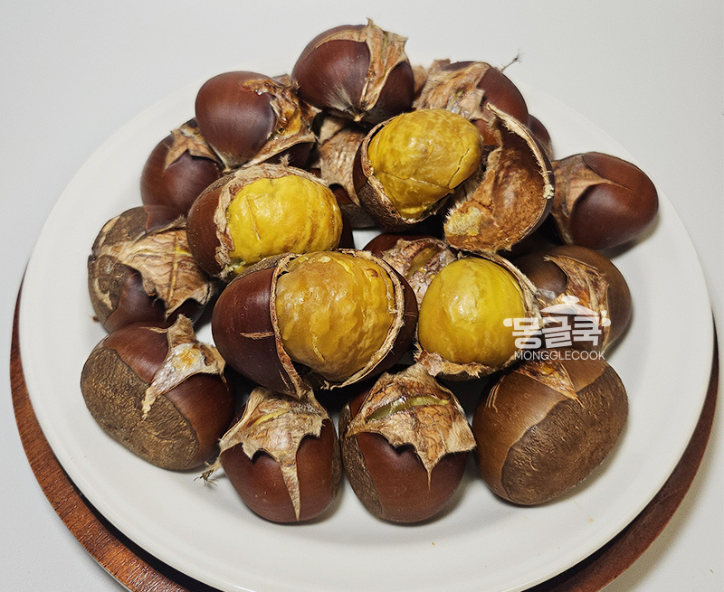 이렇게 하면 밤이 마르지 않고, 속살이 촉촉하게 익어요.