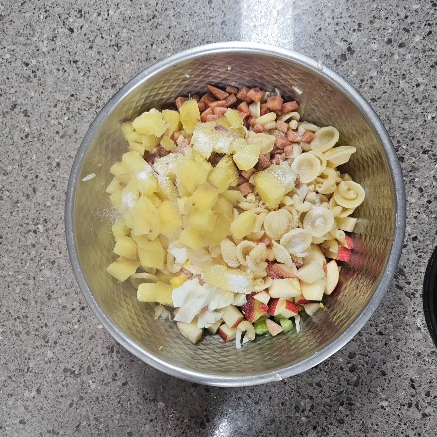 어릴 적 친정엄마가 해주시던 사라다와 감자샐러드 코울슬로가 모두 마요네즈 베이스니 어울릴 것 같아 섞어 보았는데 대 성공입니다